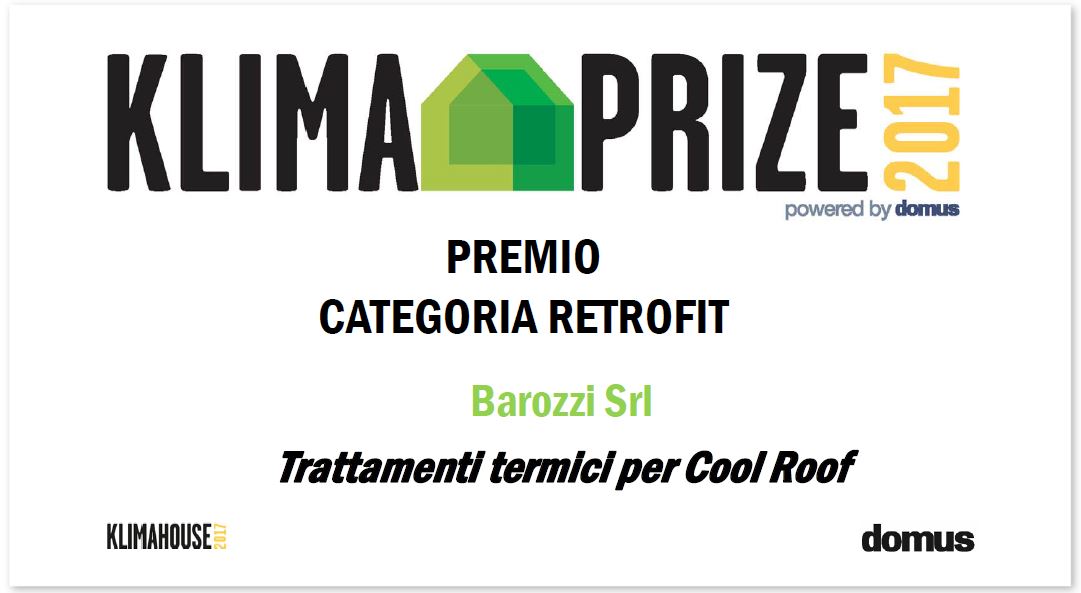 The Nanotech inside division of the Barozzi group was awarded the Klimaprize 2017 in theRetrofitcategory ,which includes plants, materials, products, services and systems designed for energy improvement at the Klimahouse fair in Bolzano.